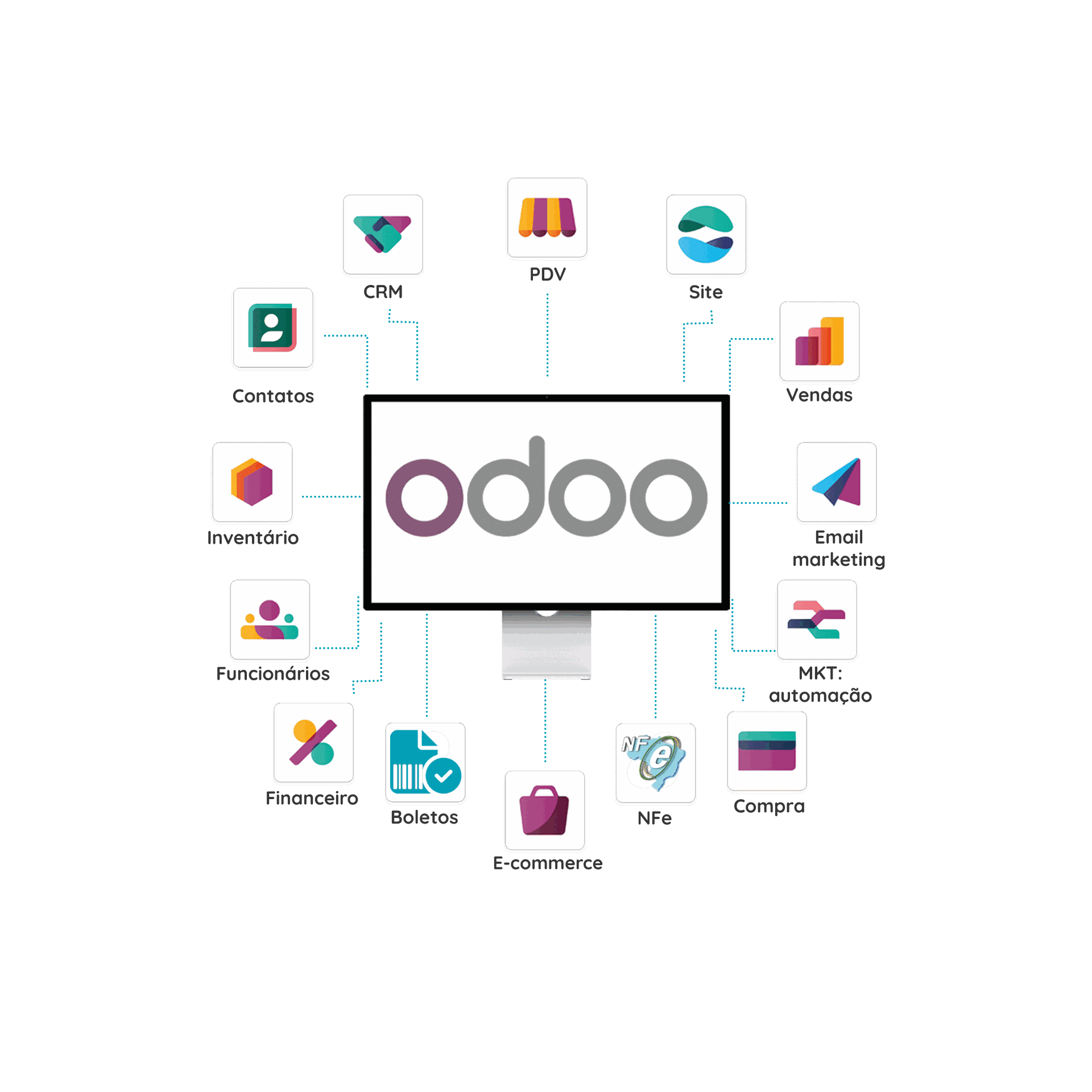 O Odoo é um sistema de ERP abrangente e altamente flexível, projetado para atender às necessidades de empresas de todos os tamanhos e segmentos. Oferecendo uma vasta gama de funcionalidades que vão desde o gerenciamento de inventário, vendas, compras e finanças, até recursos avançados como faturamento com NFe e geração de arquivos SPED. Adaptado para o mercado brasileiro, o Odoo é compatível com diversos regimes tributários, incluindo Simples Nacional, Lucro Real e Lucro Presumido, bem como empresas de capital aberto (S/A). Seu design intuitivo e capacidade de customização permitem que as empresas otimizem processos, aumentem a eficiência operacional e melhorem a tomada de decisões, tornando-se a escolha ideal para negócios que buscam inovação e crescimento sustentável.